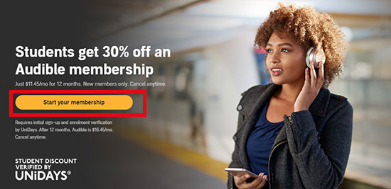 In this case, you must have a UNiDAYS account before starting your student membership. After registering the UNiDAYS, you can follow the steps below to subscribe to Audible at a student discount.