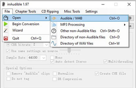 Step 2. Then go to File > Open > Audible/M4B to load Audible books.