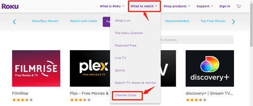 Step 1. Go to channelstore.roku.com on your computer. Then choose 'Sign in' to log in to your Roku account.