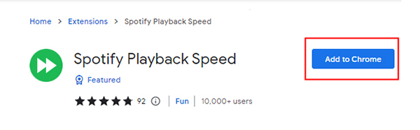 Step 1. Find the Spotify Playback Speed Access or Spotify Playback Speed extension in the Chrome web store and install it in your Chrome browser.